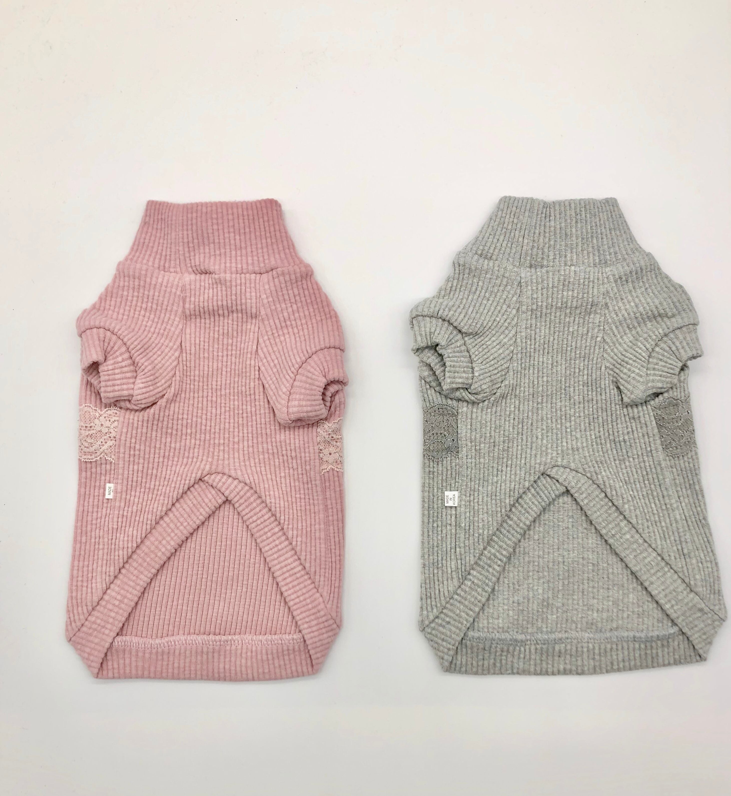 シンプルなグレーの背中にレースがあしらわれた上品で可愛いらしいデザイン。